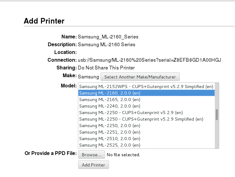 Install CUPS and system-config-printer from your linux package manager. In Ubuntu: sudo apt-get install cups system-config-printer In CentOS/Fedora: sudo yum install cups system-config-printer 6. Type sudo system-config-printer in Terminal to launch the configuration window. ... Read More